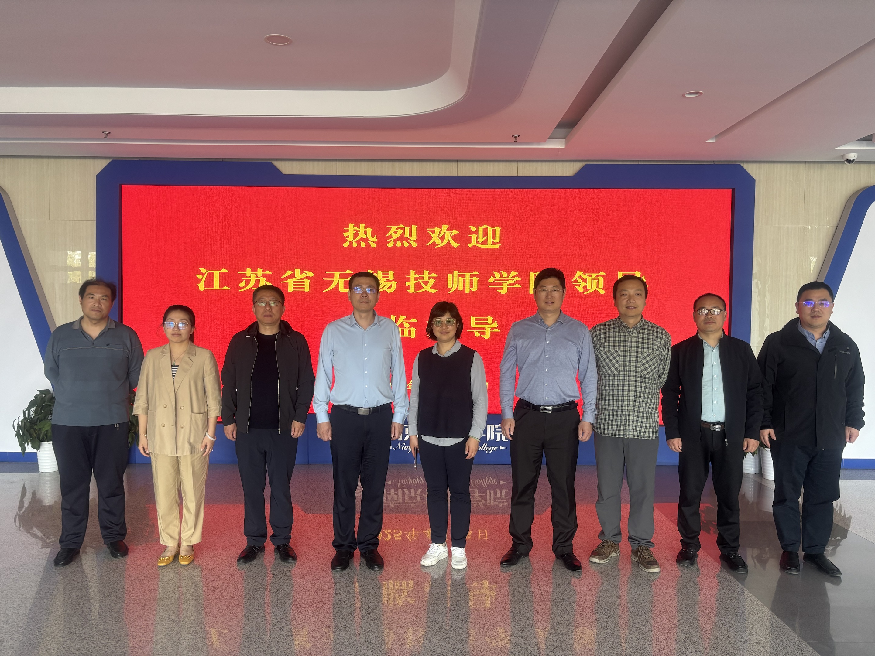 4月15日,江苏省无锡技师学院在院党委委员、副院长薛梁的带领下,一行5人来到我院进行参观交流,我院党委委员、副院长、纪委书记俞岚代表学院对来访的各位领导表示了热烈欢迎。