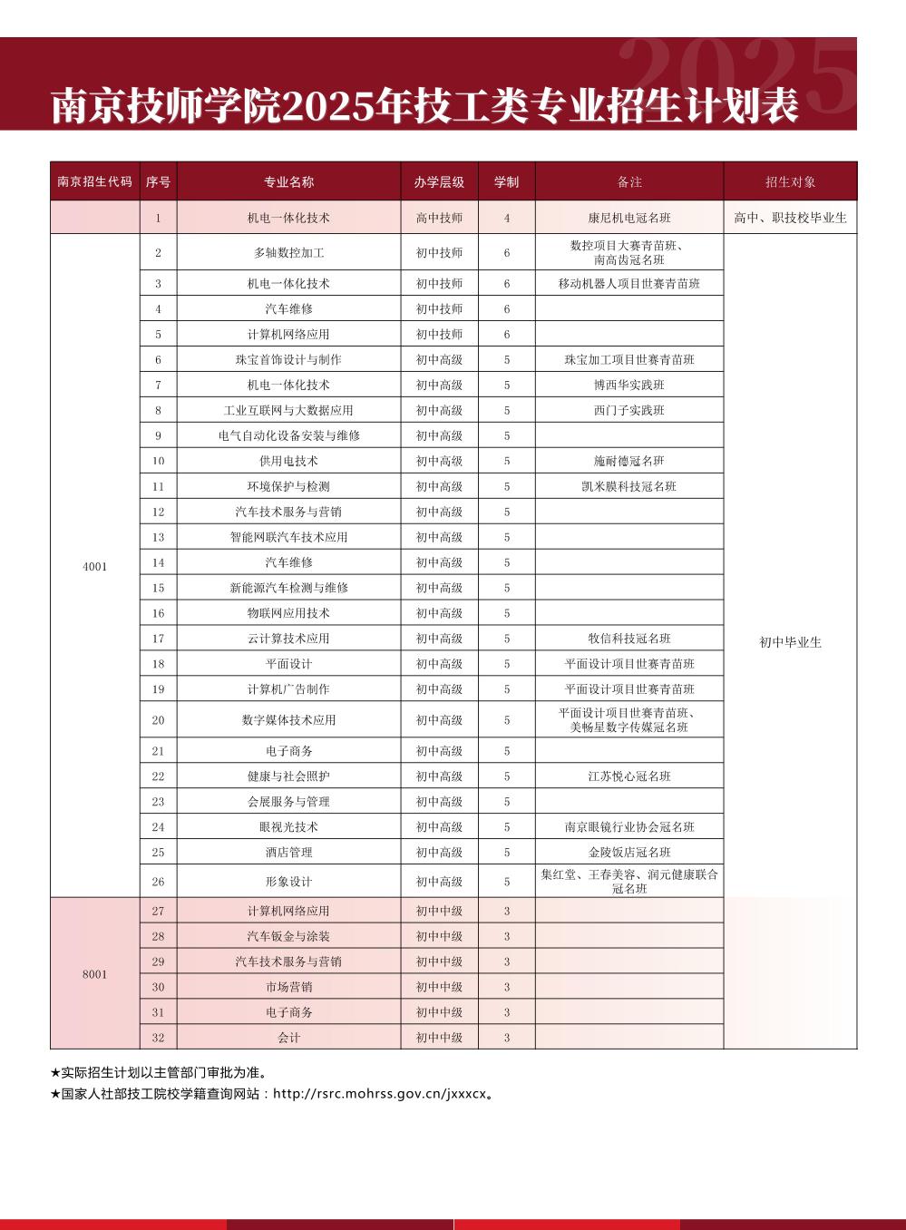 开云手机站登入2025年技工类专业招生计划表