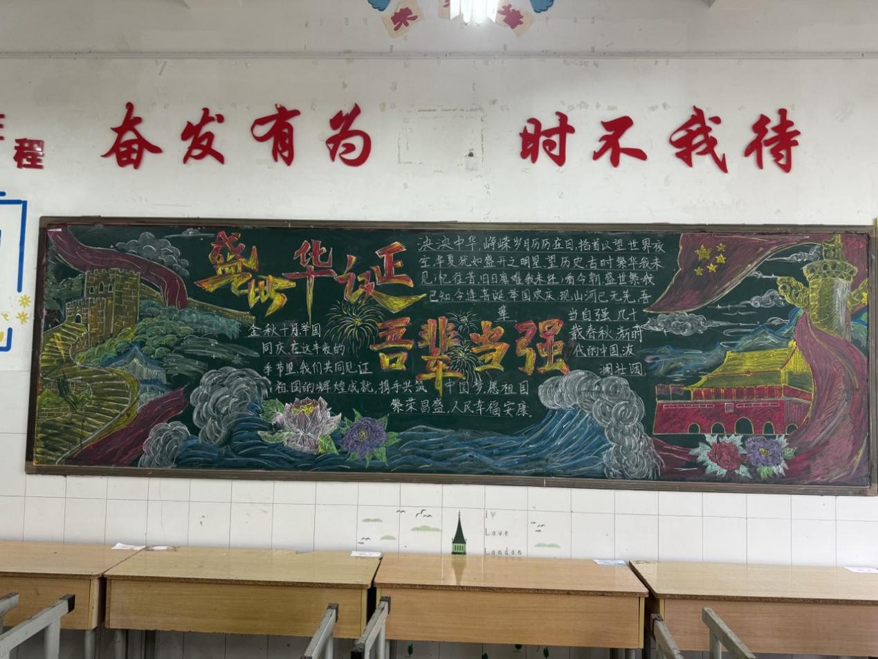 自 9 月 25 日学院团委发布活动通知以来,各班级迅速响应,利用课余时间投入黑板报的设计与绘制工作。同学们围绕 “祖国历史成就”“新时代发展成果”“青年责任担当”“爱国故事分享” 等核心方向,将家国情怀融入版面创作:有的以恢弘的红色主调勾勒祖国发展脉络,有的用细腻的插画再现革命先辈事迹,有的结合专业特色融入校园文化元素 —— 如珠宝首饰设计专业班级以精致纹样点缀报头,计算机应用专业班级用数字化设计理念优化版面布局,每一幅作品都主题鲜明、立意深刻,既展现了扎实的书写与绘画功底,更传递出新时代技工学子炽热的爱国情怀与使命担当。
